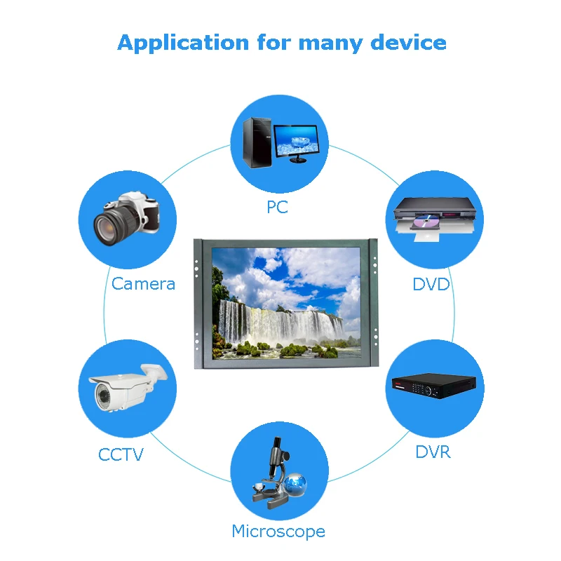 ZHIXIANDA Monitor de Marco abierto de montaje en pared integrado de 8 pulgadas Pantalla TFT CCTV LCD 1024*768 con interfaz múltiple y altavoces