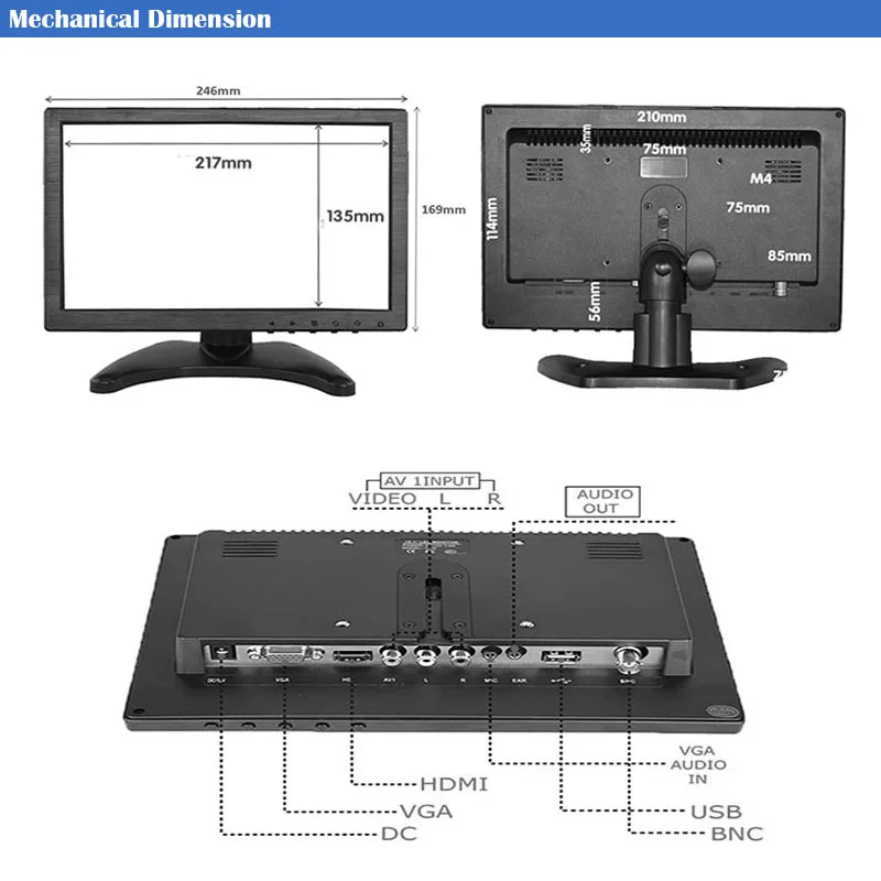 ZHIXIANDA 10 pulgadas IPS 1920x1200 DVR CCTV microscopio Monitor LCD con BNC HDMI VGA AV de entrada USB