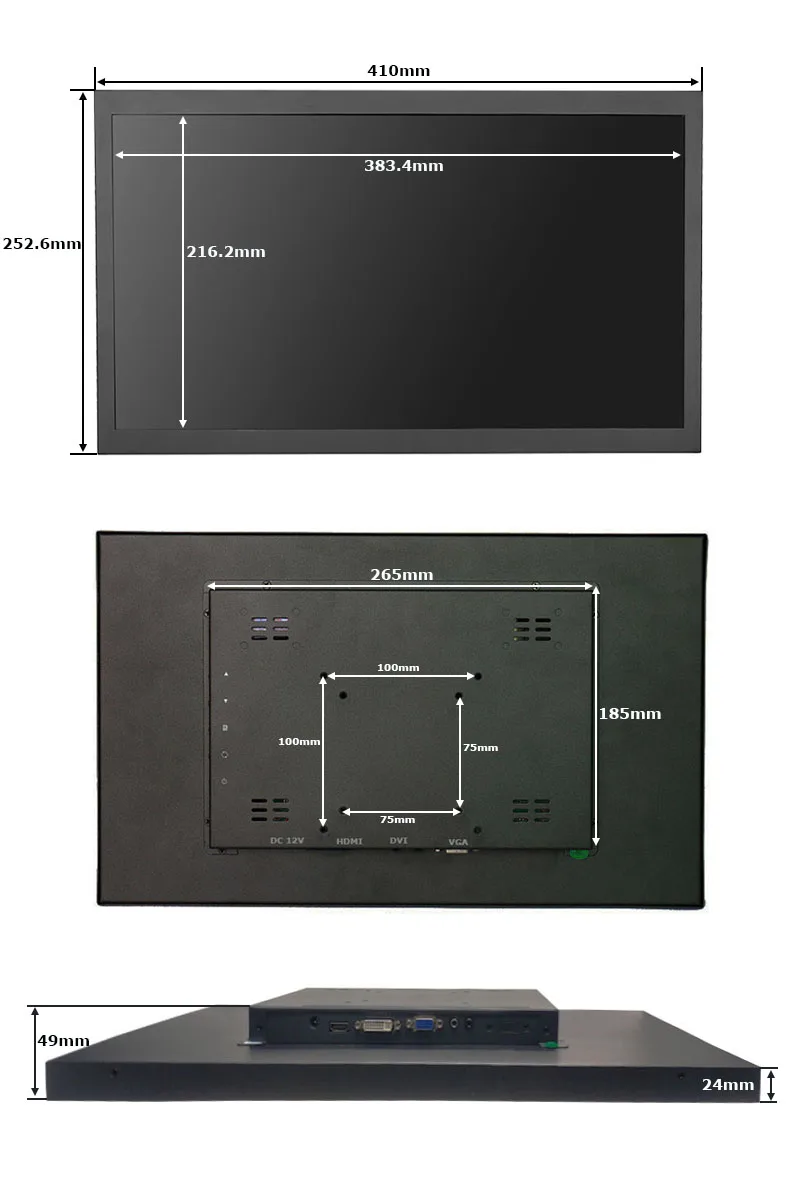 ZHIXIANDA nuevo producto 17,3 pulgadas 16:9 ancho caja de Metal Lcd Monitor de alta resolución 1920*1080 con HDMI VGA AV BNC USB