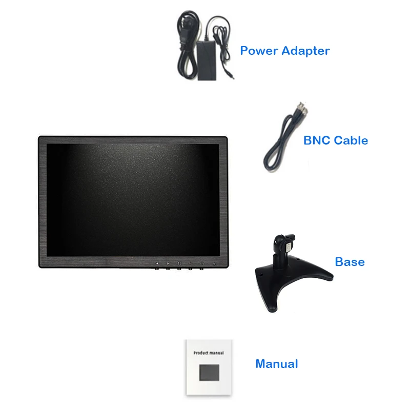 MaterialPlásticoRelación de aspecto16:10Resolución1280(RGB)* 800Brillo300cd/m2Relación contraste1000:1Ángulo de visiónTiempo de respuesta25 (Typ.)(Tr + Td) (MS)Velocidad de fotogramas60HzSistema colorPAL/ NTSCInterfazHDMI/BNC/VGA/AV/USBPotenciaDC12V/2AEnchufeEnchufe disponible AU,EU,USA,UKIdiomas del menúInglés, francés, italiano, alemán, español, ruso,Chino tradicional, chino simplificado, etc.