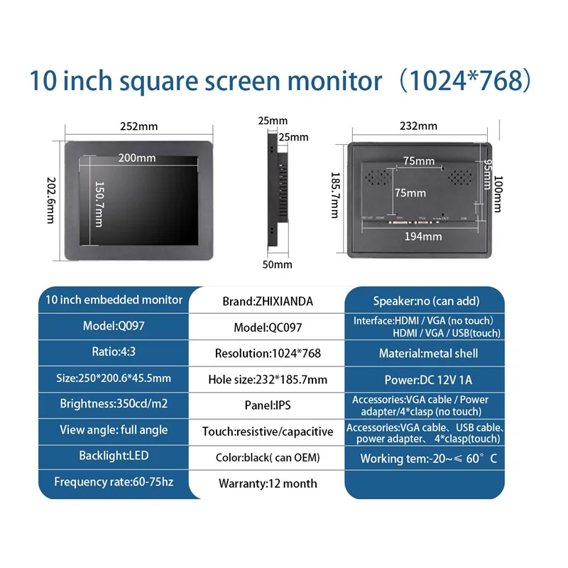 Comprar Zhixianda-Monitor de pantalla táctil capacitiva carcasa de Metal Industrial de 9,7 pulgadas TFT LCD integrado HD-MI VGA resistivo