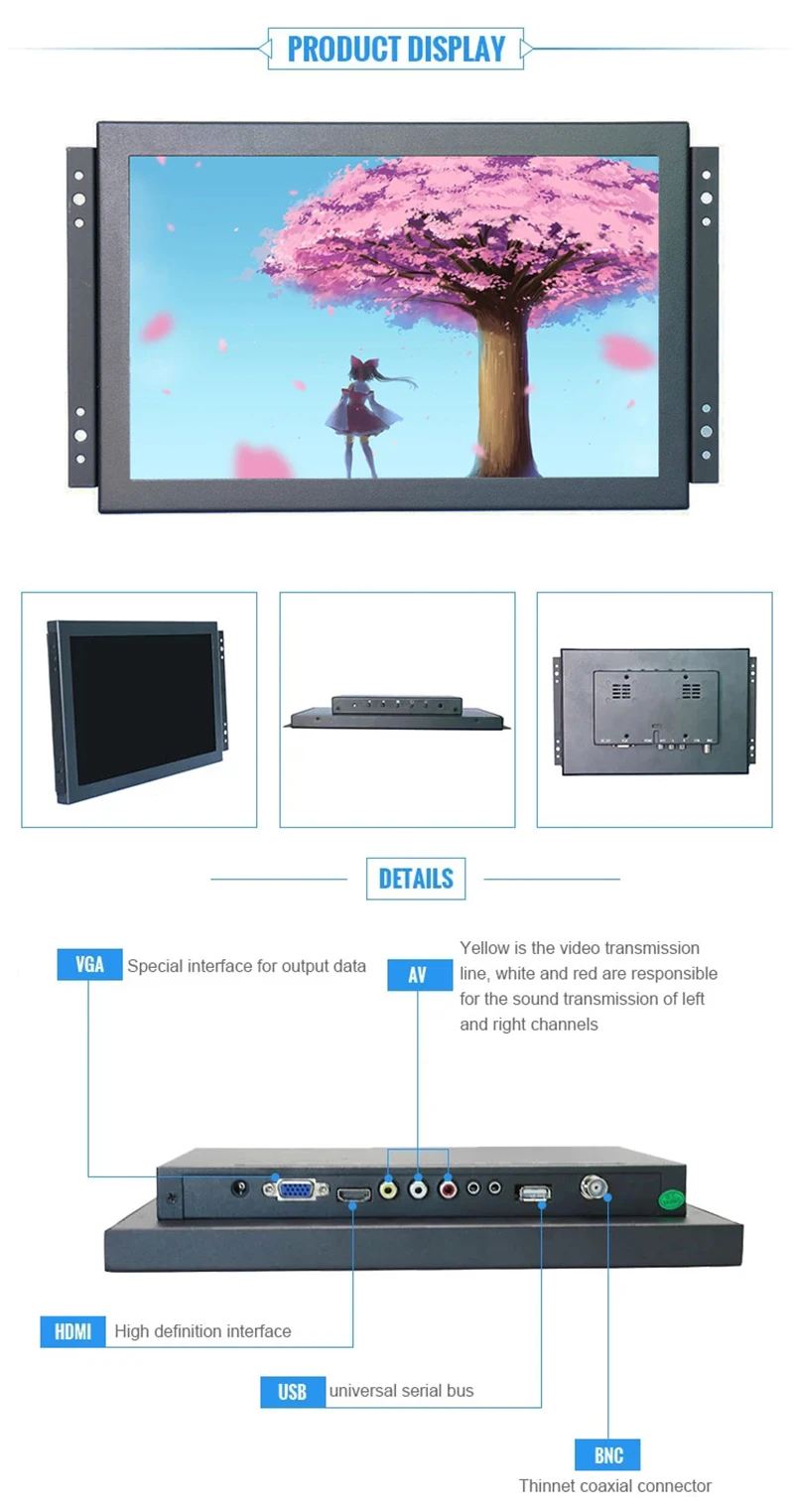 Comprar ZHIXIANDA-Monitor de pantalla táctil capacitiva LCD FHD de 10,1 pulgadas, con HDMI, VGA, BNC, ENTRADA AV y USB