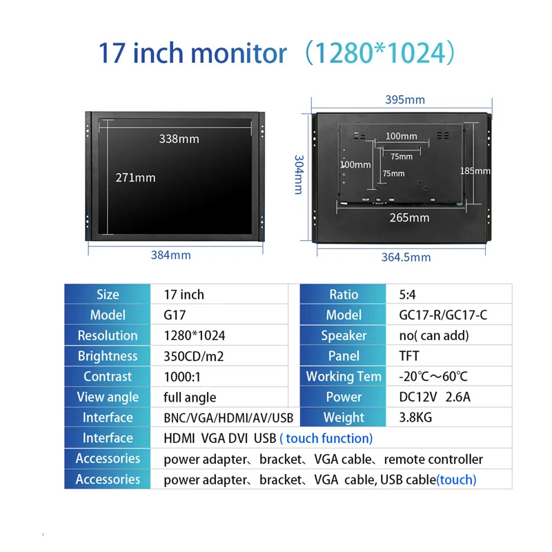 Las especificaciones del monitor LCD de marco abierto de 17 pulgadas 4:3