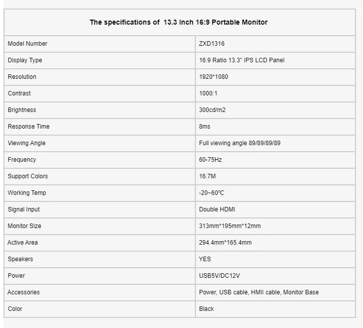 1. Este monitor portátil de 13,3 pulgadas tiene una alta resolución de 1920x1080, ángulo de visión de 178 °, para que pueda disfrutar de imágenes estereoscópicas realistas más claras.