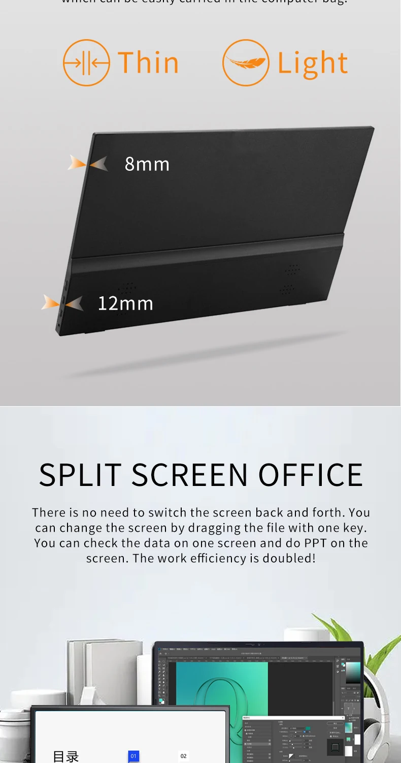 6. monitor ultrafino de 10mm. La pantalla grande y el peso más ligero son convenientes para la oficina de negocios móvil, viajes y juegos.