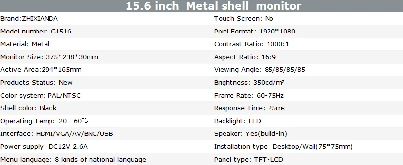 Comprar ZHIXIANDA-Monitor táctil capacitivo para escritorio, montaje en pared de 15,6 pulgadas, marco abierto, TFT, LCD, precio de fábrica