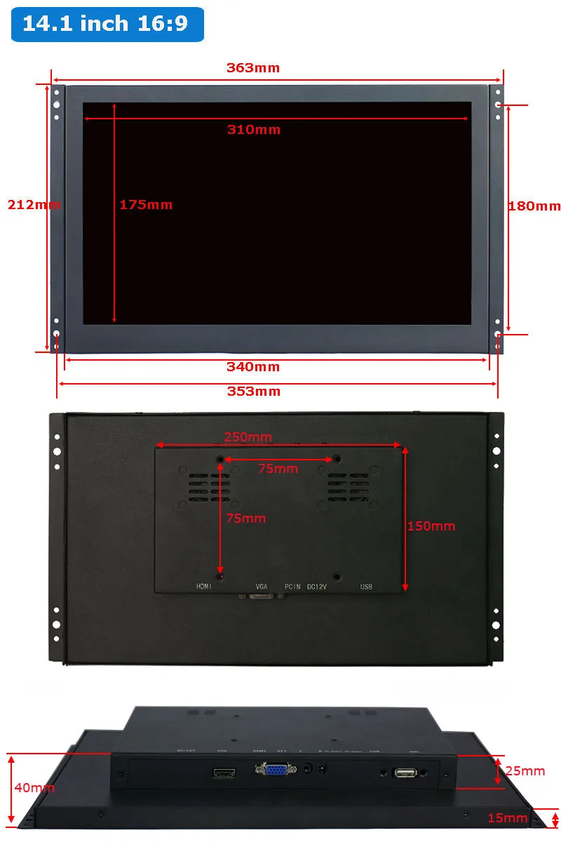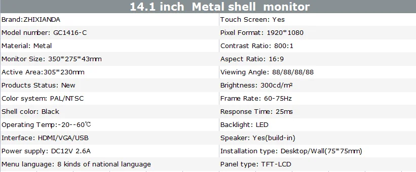 Comprar ZHIXIANDA-pantalla Industrial de 14,1 pulgadas, carcasa de Metal, 1920x1080, HDMI, VGA, entrada USB, marco abierto, Monitor táctil capacitivo