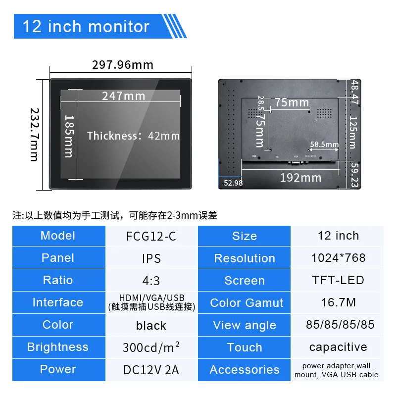 Comprar ZHIXIANDA-pantalla táctil capacitiva de 12 pulgadas Monitor LCD Industrial de Marco abierto con entrada HDMI VGA USB 1024x768