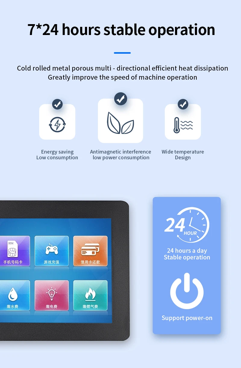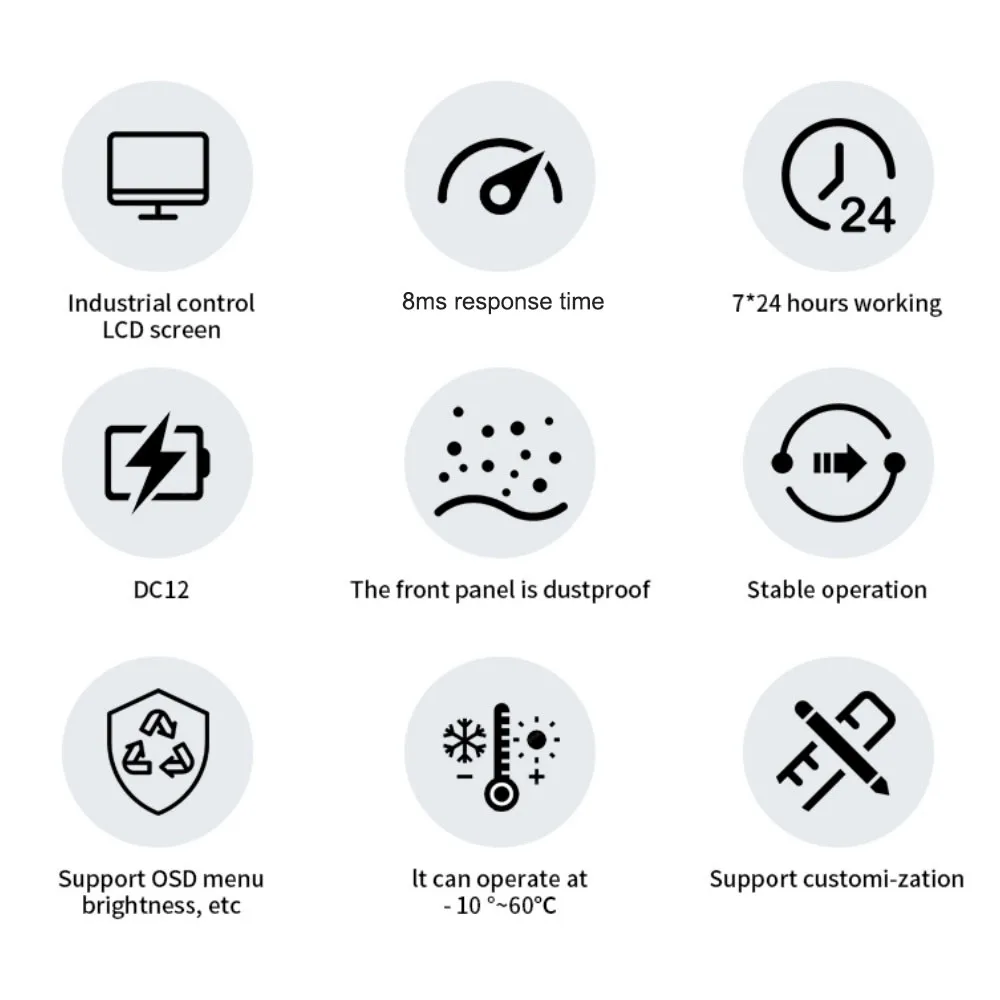 With multi-interfaces: HDMI VGA DVI(No touch); HDMI VGA DVI USB(Touch), achieve multi-function