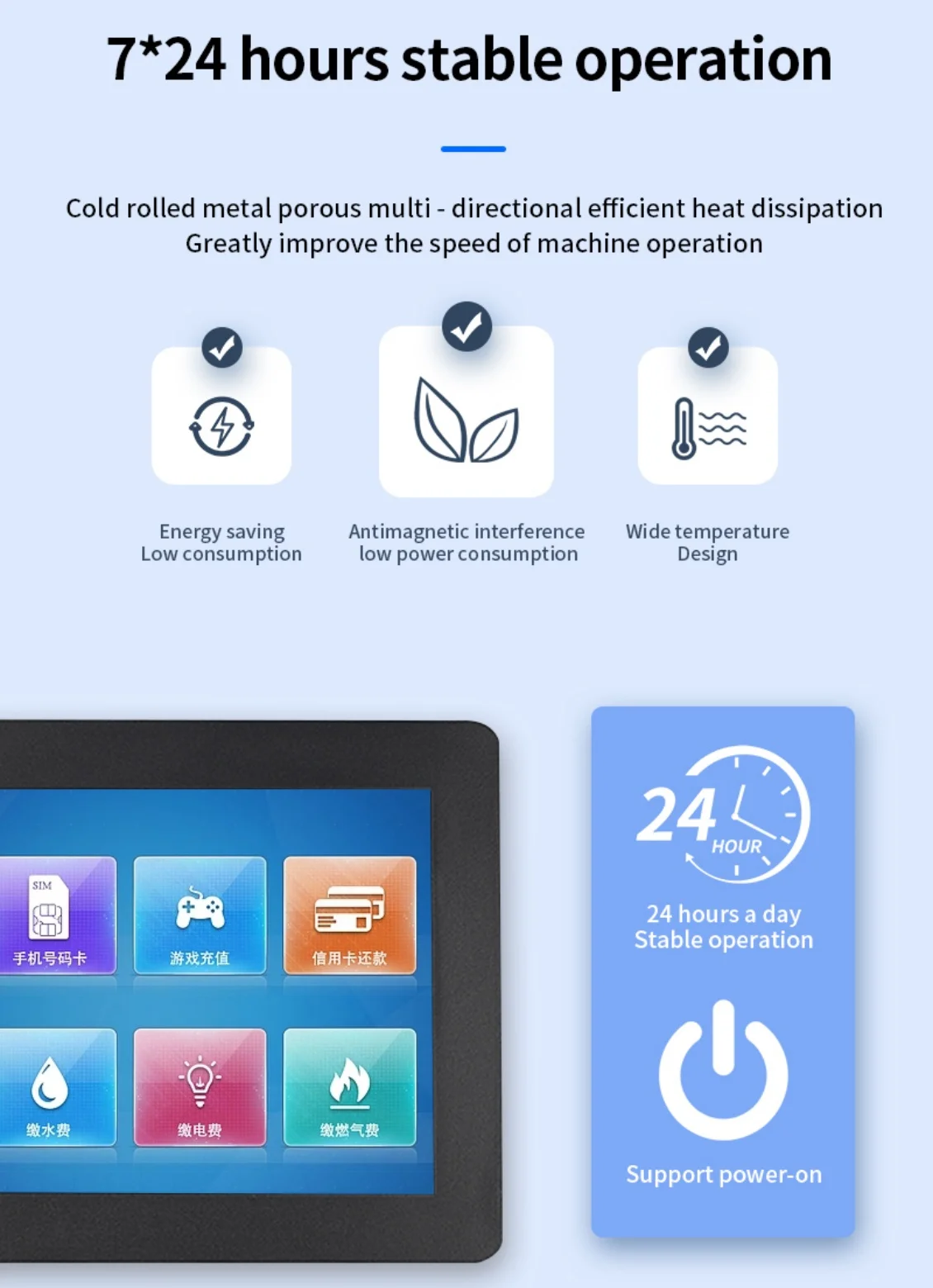 With multi-interfaces: HDMI VGA DVI(No touch); HDMI VGA DVI USB(Touch), achieve multi-function