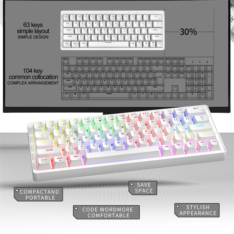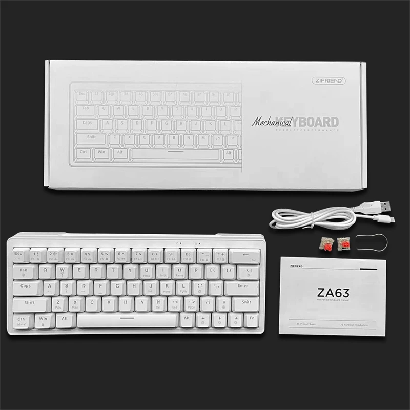 Comprar ZIFRIEND ZA63 Teclado mecánico 63 teclas intercambiables en caliente con cable RGB rojo azul interruptor Gaming Anti-ghosting 60% teclado blanco Keycap