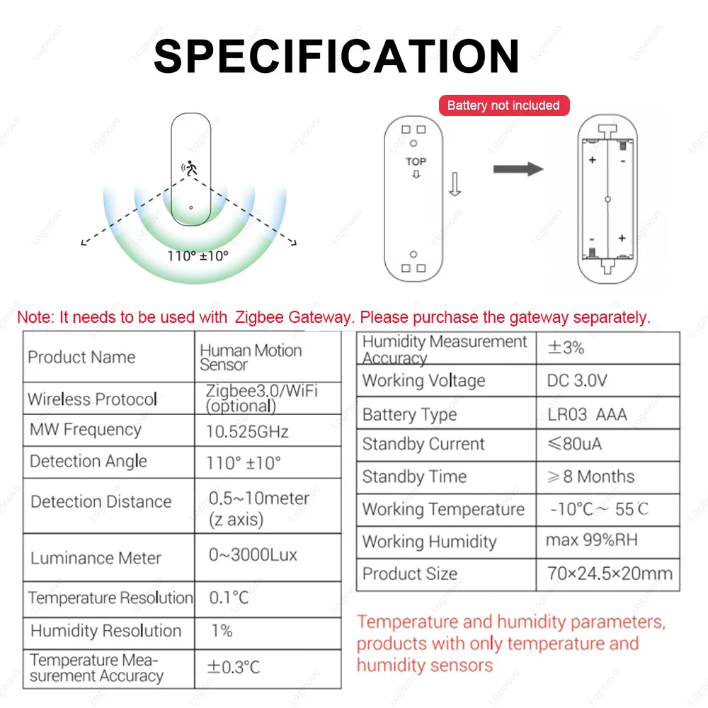Nota: ¡se requiere puerta de enlace zigbee, batería no incluida!!