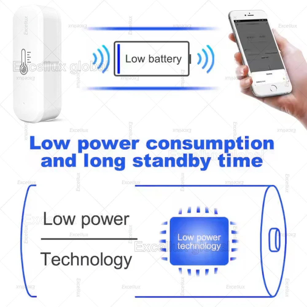 3.Nueva tecnología ZigBee con microprocesador de bajo consumo de energía para un modo de espera prolongado. Diseñado con función de recordatorio de monitoreo de bajo voltaje en la aplicación para suministro de energía en tiempo real para su sensor. Funciona con batería de larga duración.(Tienda global Excellux)