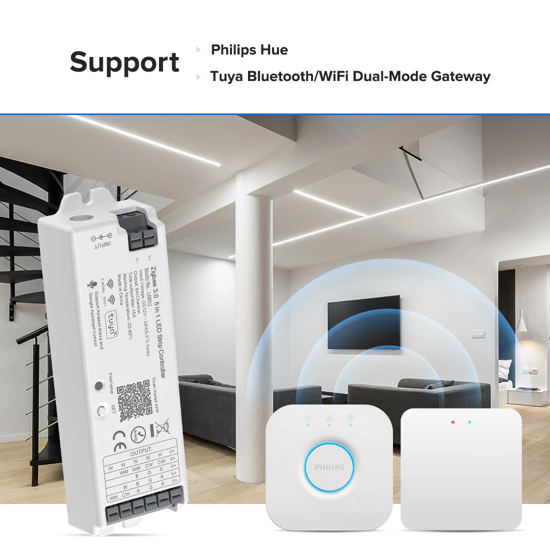 Controlador LED Zigbee 3,0 WiFi 2,4 GHz 5 en 1 Hue Bridge Tuya Dual Mode Gateway Smart Things Alexa Google Assistance DC5V-24V