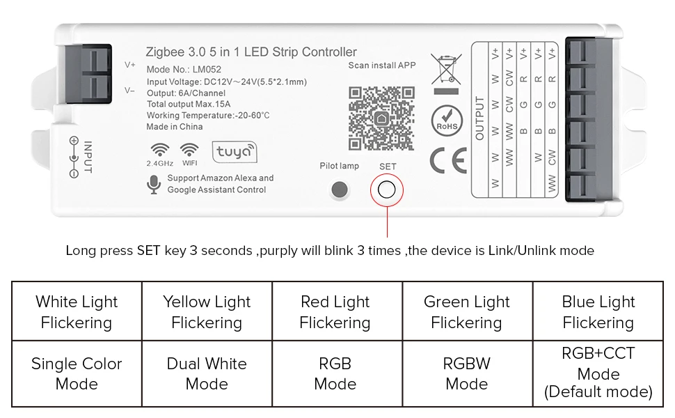 Comprar Zigbee-controlador de tira de LED inteligente, 5 en 1, puente Hue, puerta de enlace de modo Dual Tuya, Alexa, RF, remoto, 3,0G, DC12V-24V, 2,4