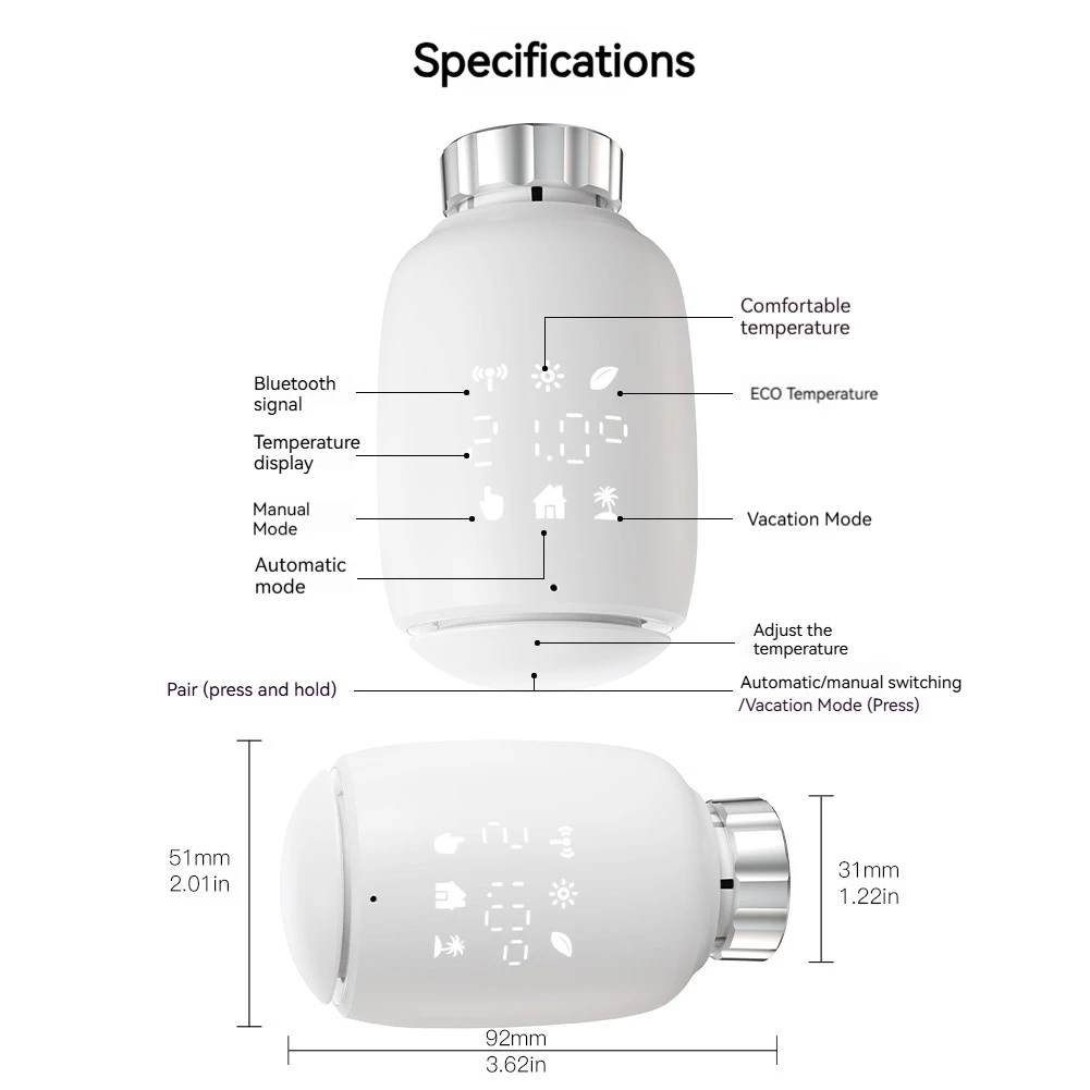 Tuya Zigbee Knob Smart TRV - Válvula termostática para radiador Control de temperatura constante de ahorro de energía, aplicación remota/temporizador