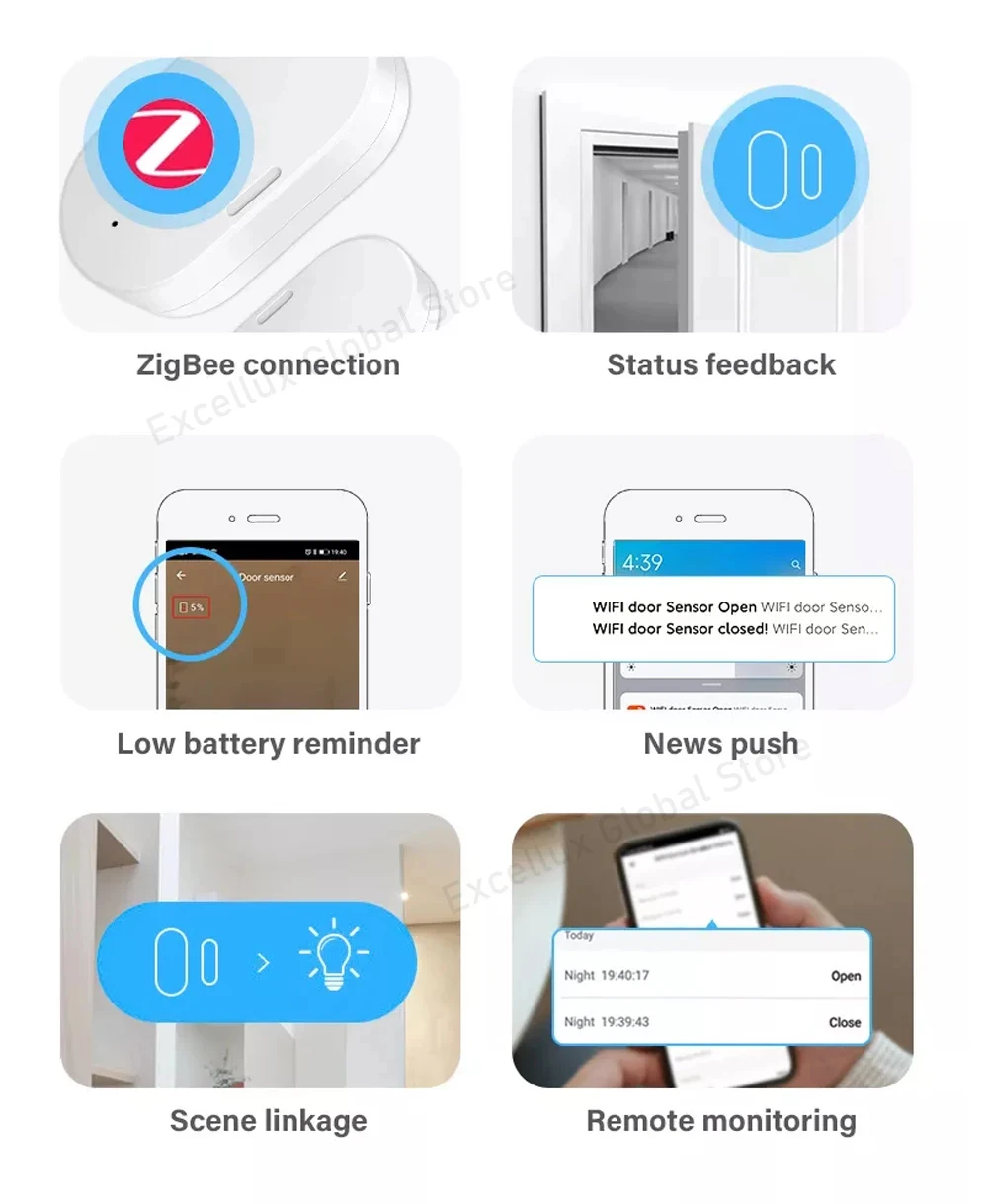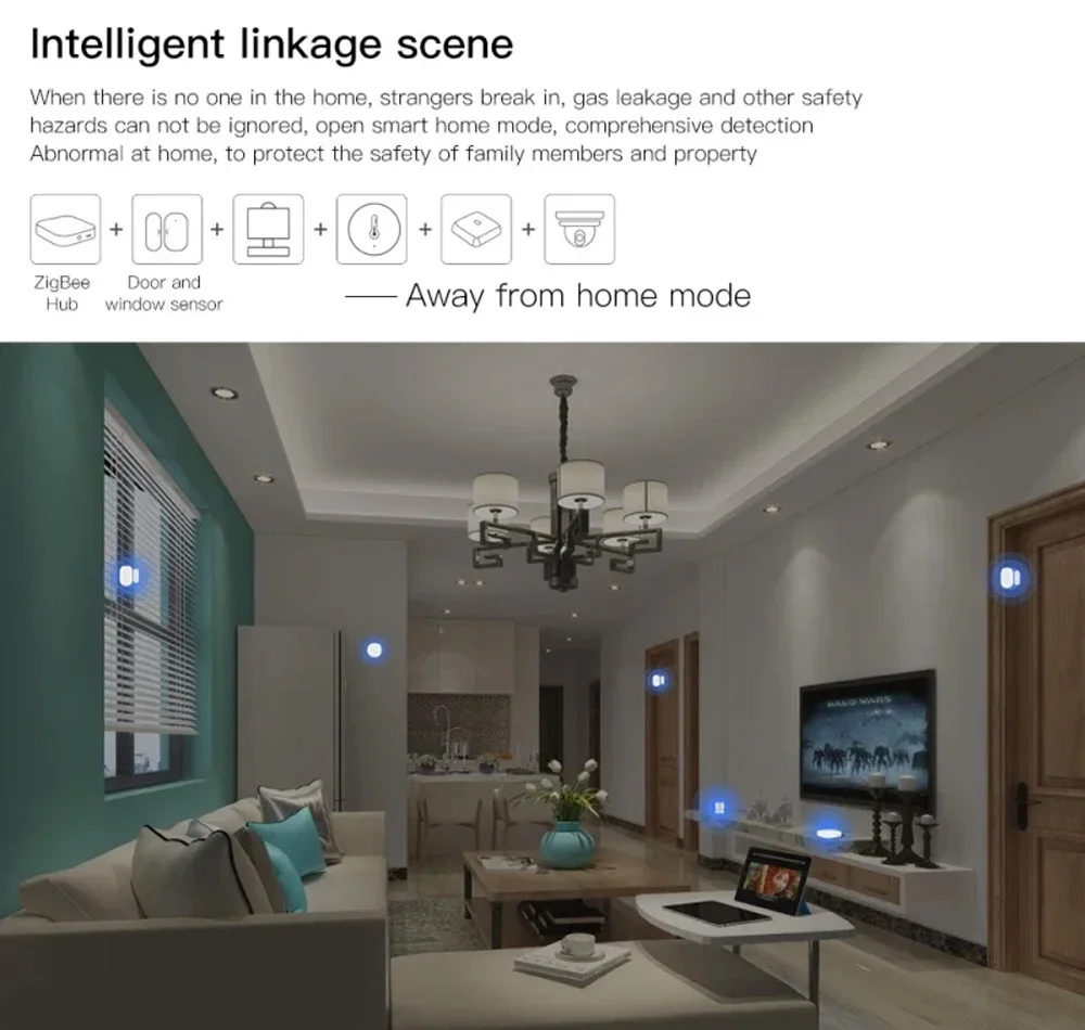 1.Sensor inteligente de puerta y ventana ZigBee: un concentrador de enlace inalámbrico ZigBee es imprescindible para trabajar con el sensor de puerta y ventana, así como con una variedad de productos inteligentes ZigBee, que ha demostrado ser el puente y el centro de control para hogares inteligentes y desempeña un papel insustituible para todos Productos ZigBee y realiza toda la conexión inteligente de su casa.
