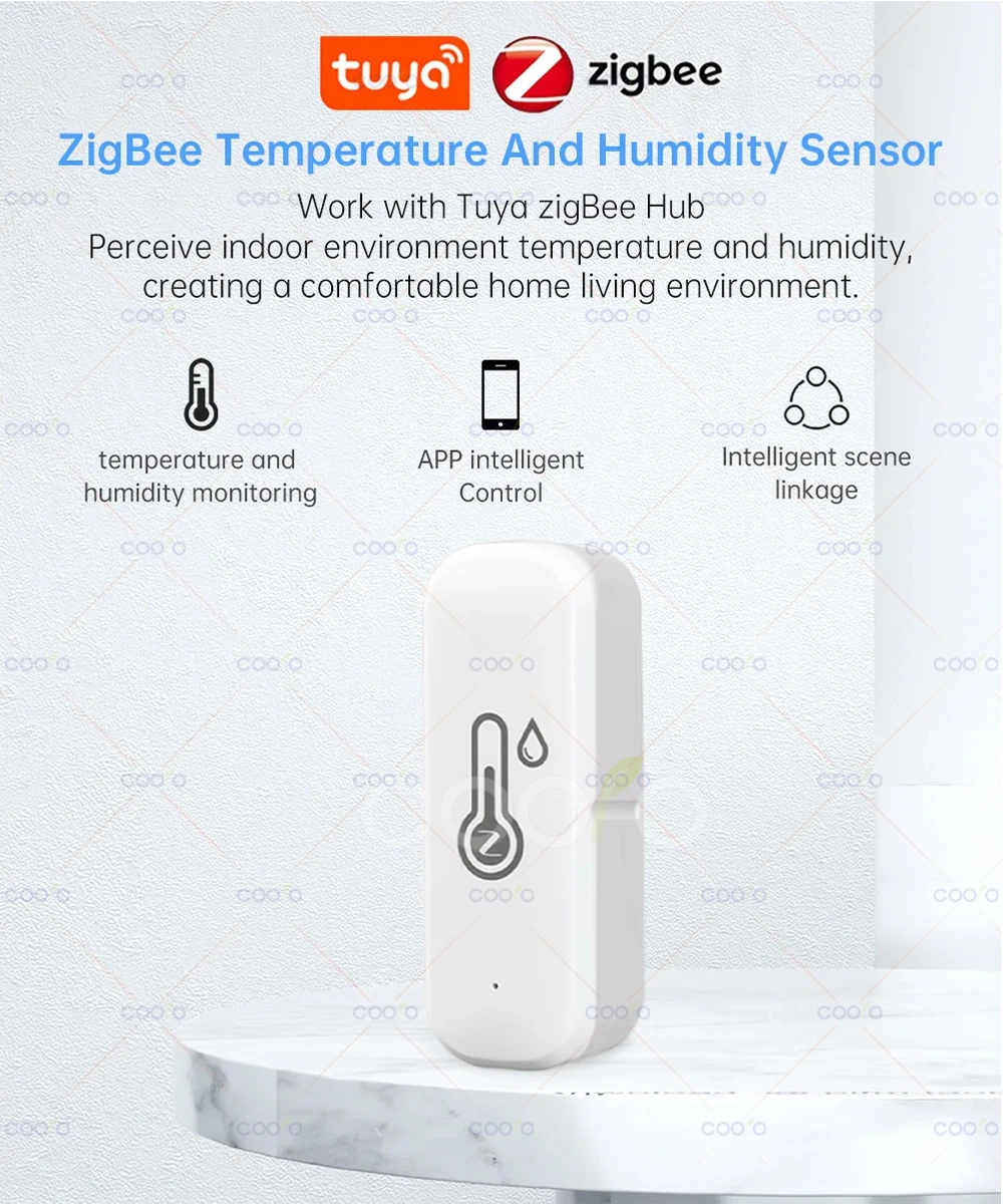 Nueva tecnología ZigBee con microprocesador de bajo consumo de energía para un modo de espera prolongado. Diseñado con función de recordatorio de monitoreo de bajo voltaje en la aplicación para suministro de energía en tiempo real para su sensor. Funciona con batería de larga duración;