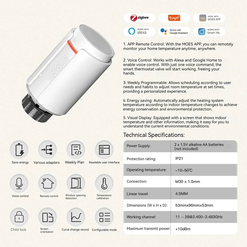 Tuya Zigbee Smart TRV-válvula termostática para radiador, ahorro de energía, Control de temperatura constante, aplicación remota/funciona por voz con Alexa
