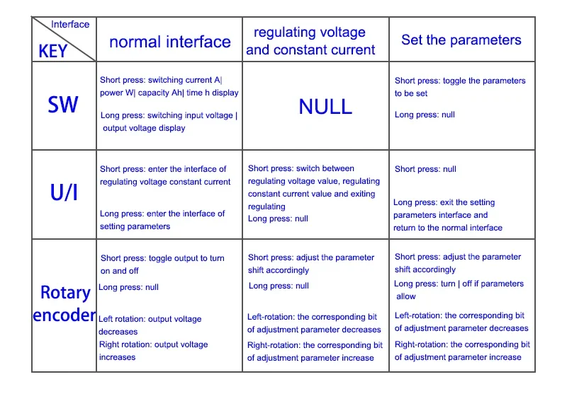 Codificador para cambiar dos estados. Después de la configuración, mantenga presionado U/I para volver a