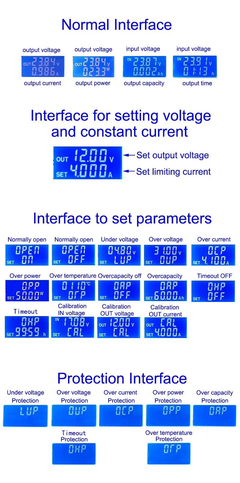 1.1 La pantalla LCD puede mostrar voltaje de entrada/salida, corriente de salida/potencia de salida/capacidad de salida/tiempo de salida;