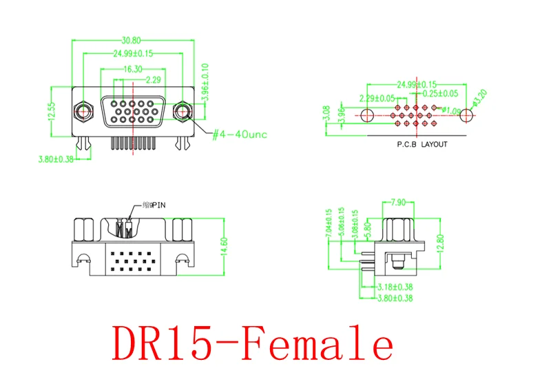 Comprar Zócalo VGA DR15 hembra/cabeza 3 filas 15 aguja 90 grados, placa soldada de pie de flexión DB15 cuerpo corto 3,08mm
