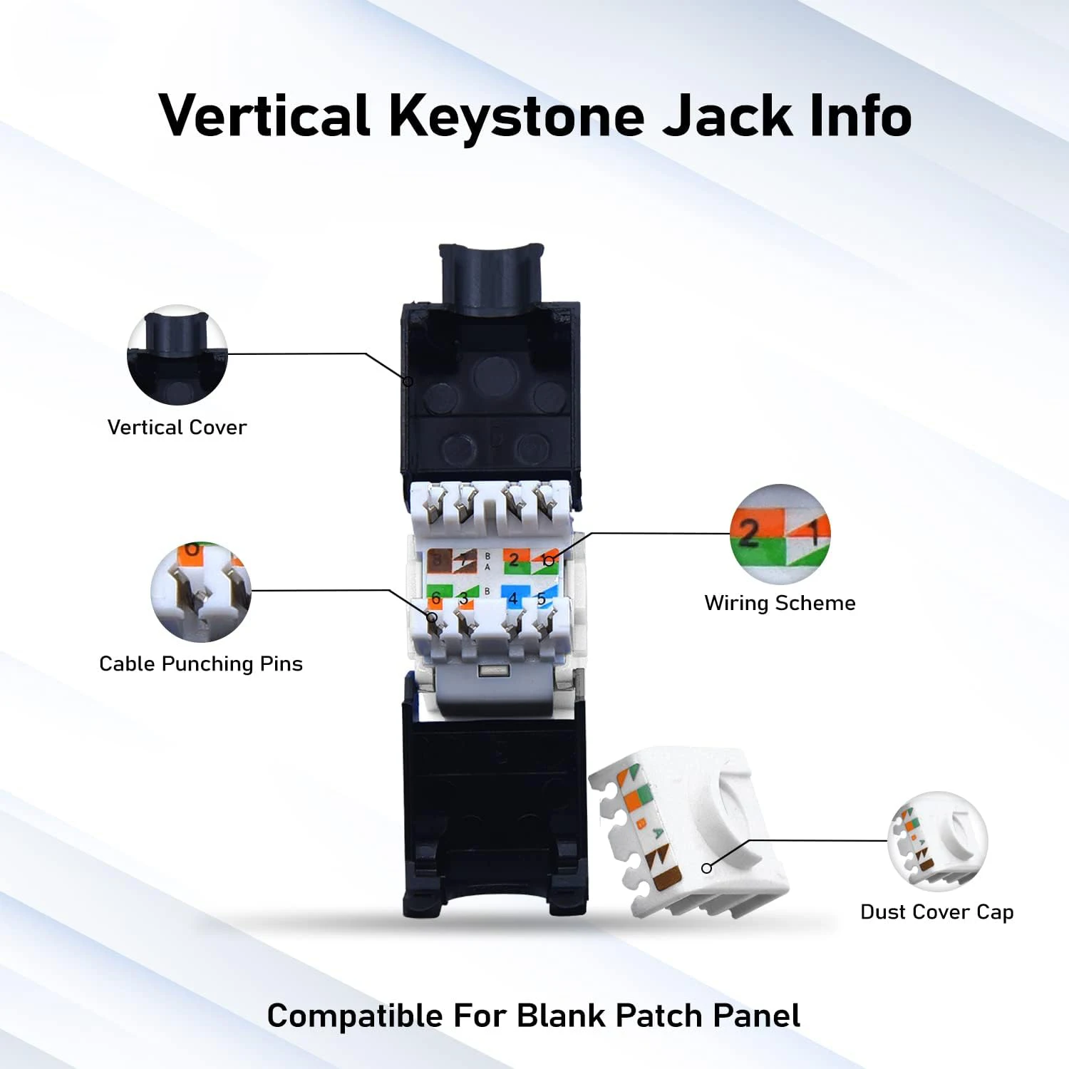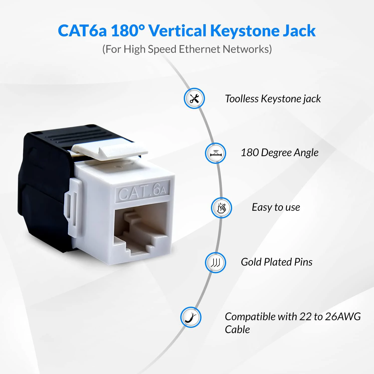 Conector Keystone ZoeRax Cat8 Cat7 Cat6a RJ45| Conector hembra de terminación sin herramientas UTP vertical de 180 grados| Adaptador Ethernet de red