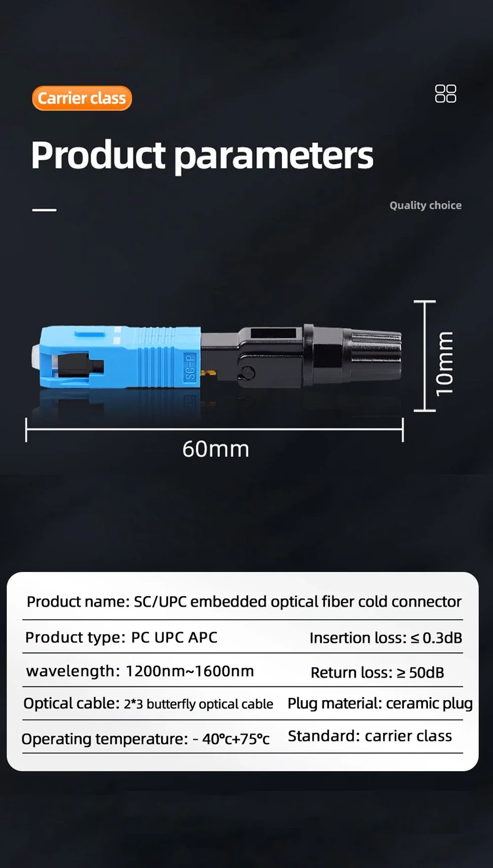 Nombre del producto: Conector frío de fibra integrado SC/UPC