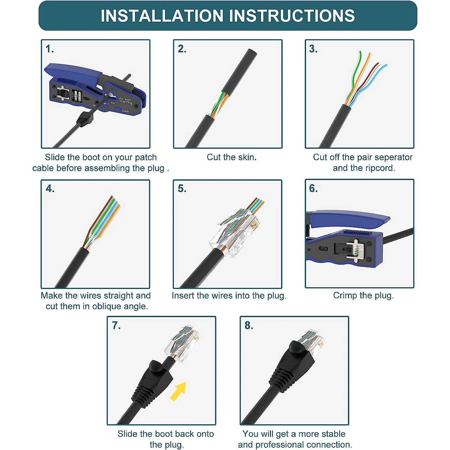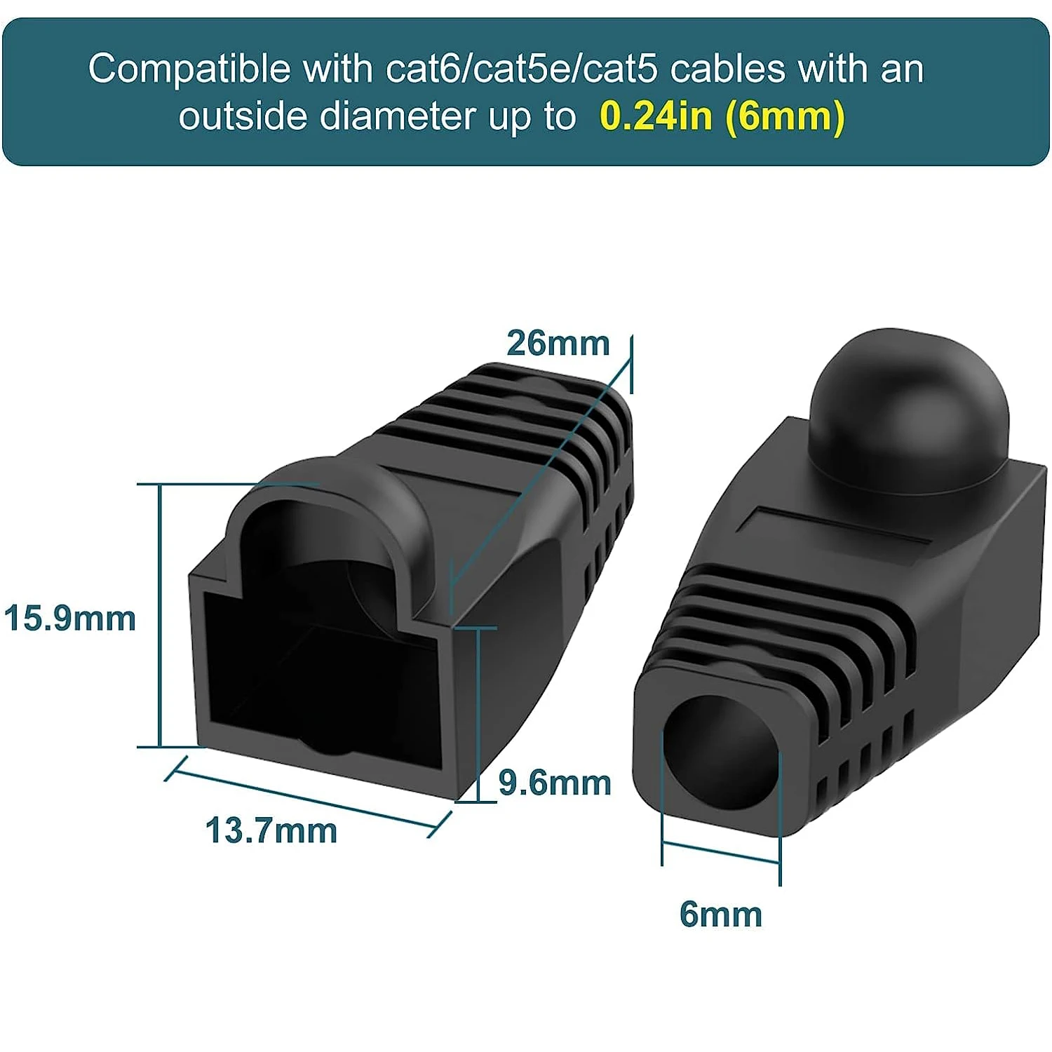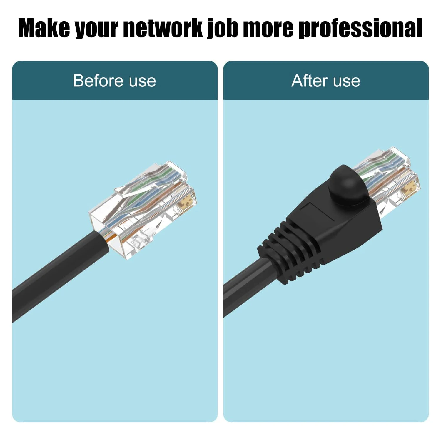 Conectores compatibles: CAT5 CAT5E CAT6 CAT6E RJ45, conector de tapa de Cable, botas, cubierta de enchufe, botas para aliviar la tensión.