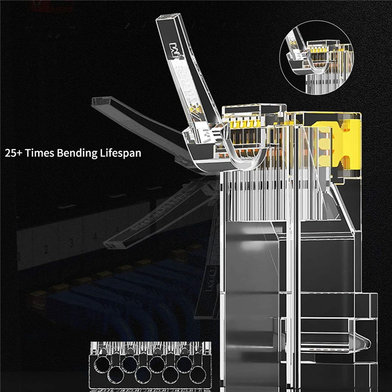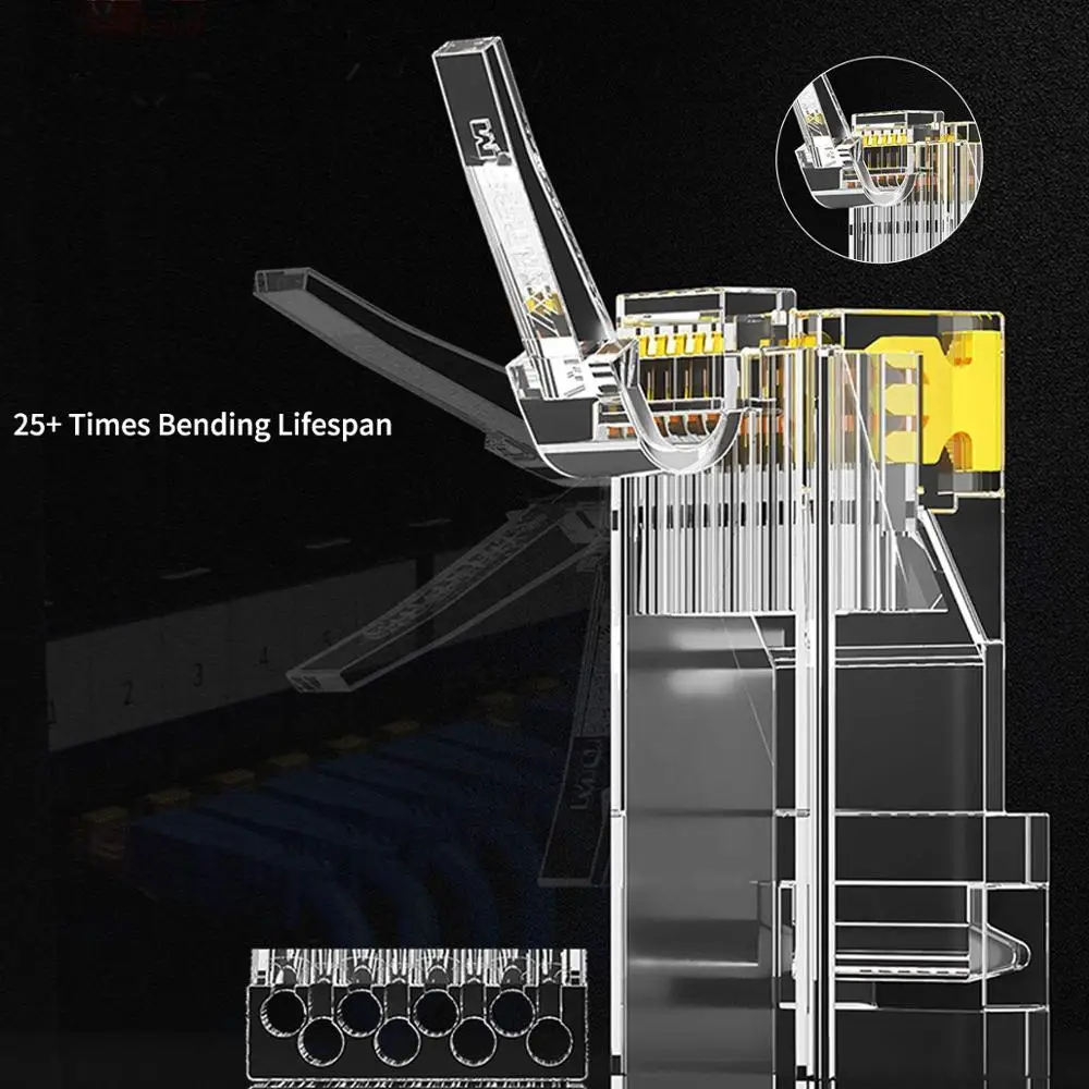 Uso sin preocupaciones: los contactos chapados en oro mantienen una transmisión de datos superior y confiable al evitar que la corrosión dure en el tiempo; la carcasa de policarbonato transparente resistente a los impactos es duradera para engarzar. El clip de bloqueo del conector se puede doblar muchas veces sin romperse