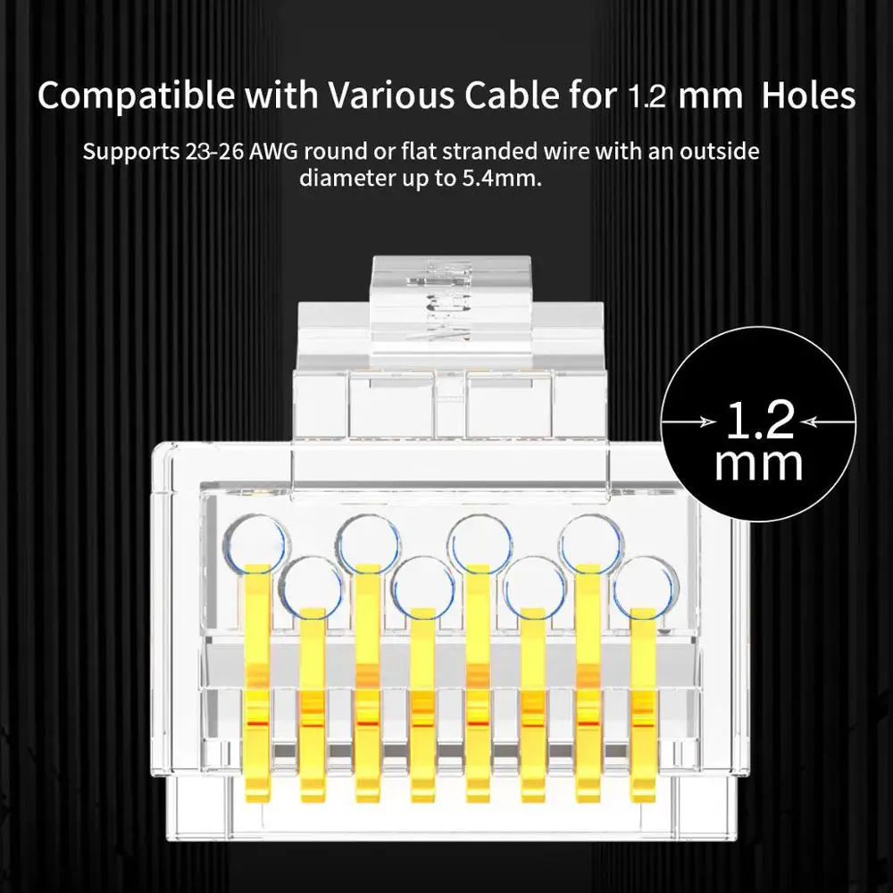 -Reduce la distancia entre los giros de cable y los contactos, mejora el rendimiento. Funciona con prácticamente todos los modelos de herramienta de crimpadora RJ45 y cable de 23AWG.