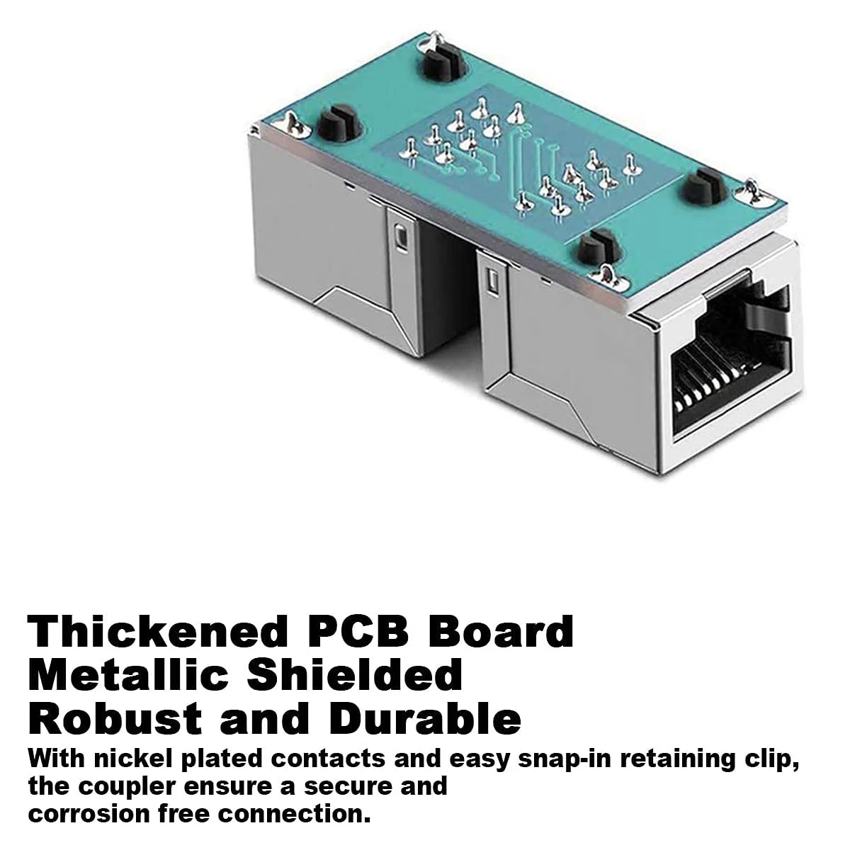 Seguro y protegido: con contactos niquelados y un clip de retención fácil de colocar, el acoplador RJ45 extensor Ethernet garantiza una conexión segura y sin corrosión.