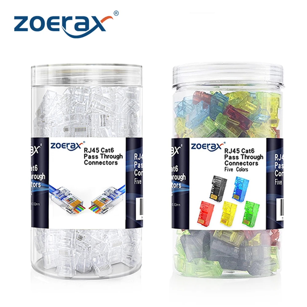 ZoeRax 200/100/50 Uds conector de paso RJ45 Cat6 enchufes modulares RJ45 agujero de 1,1mm para Cable UTP/STP sólido o trenzado