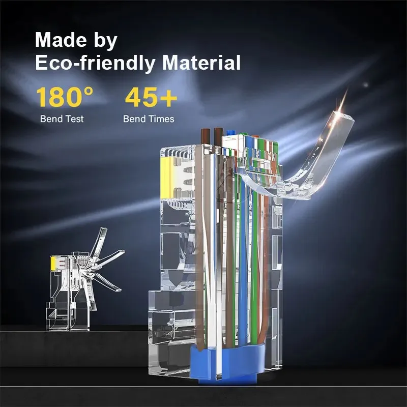 Estos enchufes CAT6 RJ45 logran una mejor transmisión de datos y admiten una velocidad de hasta 1000 Mbps.; Compatible con versiones anteriores de cable trenzado o sólido Cat 5e.