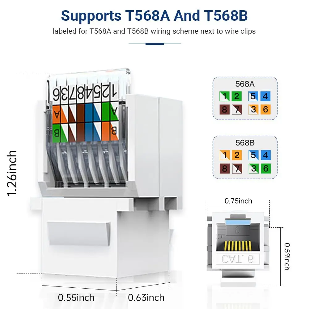 ✅Alto rendimiento: Cumpla con el rendimiento de Category6 de acuerdo con el estándar ANSI/TIA/EIA 568-C.2 y soporte PoE. Compatible con sólidos y conductores de cobre trenzados de 23 a 26 AWG.