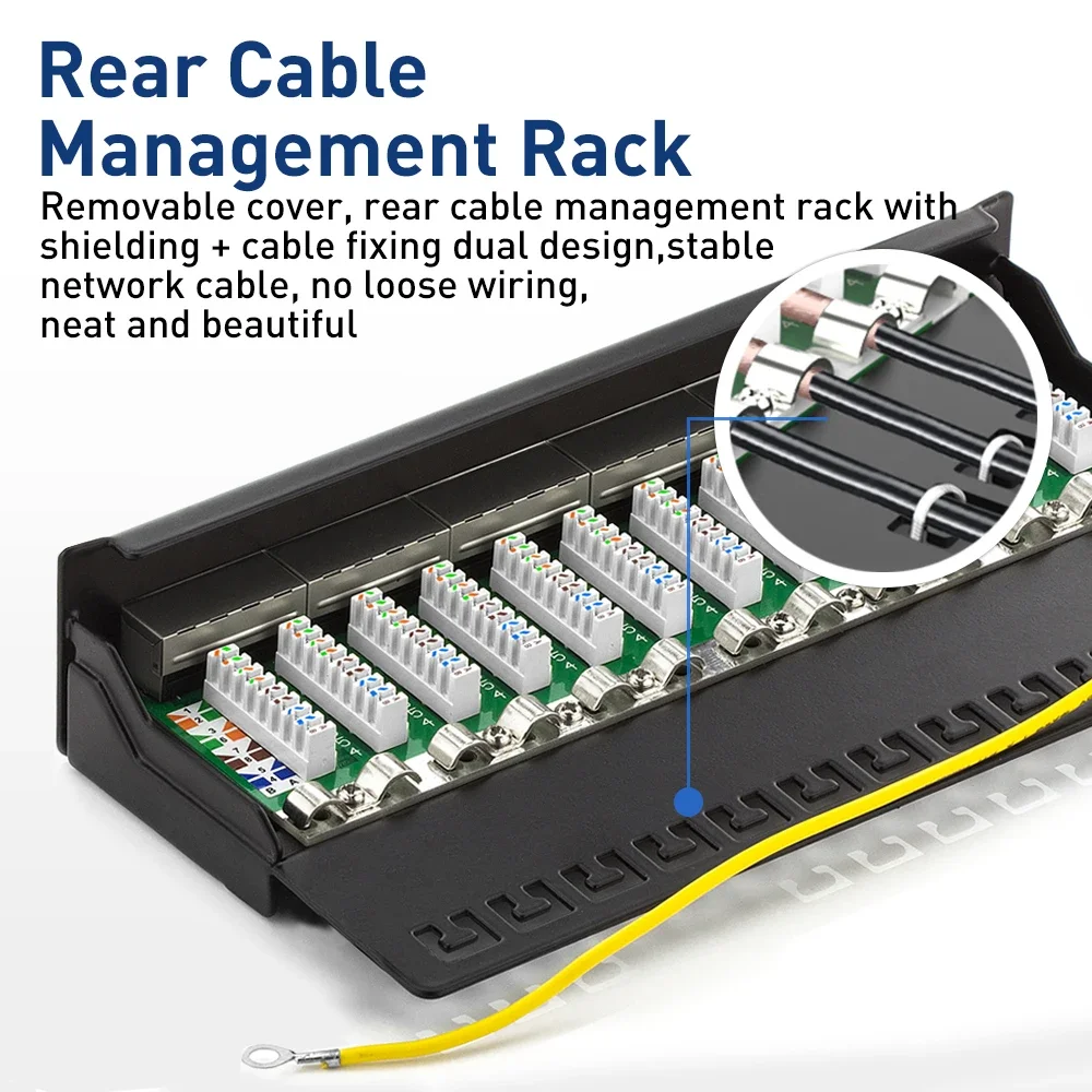 Comprar ZOERAX 8/12 puertos 1U RJ45 CAT6A Panel de conexión 10Gbps montaje en pared y de escritorio blindado para Cable de instalación de red LAN de enchufe