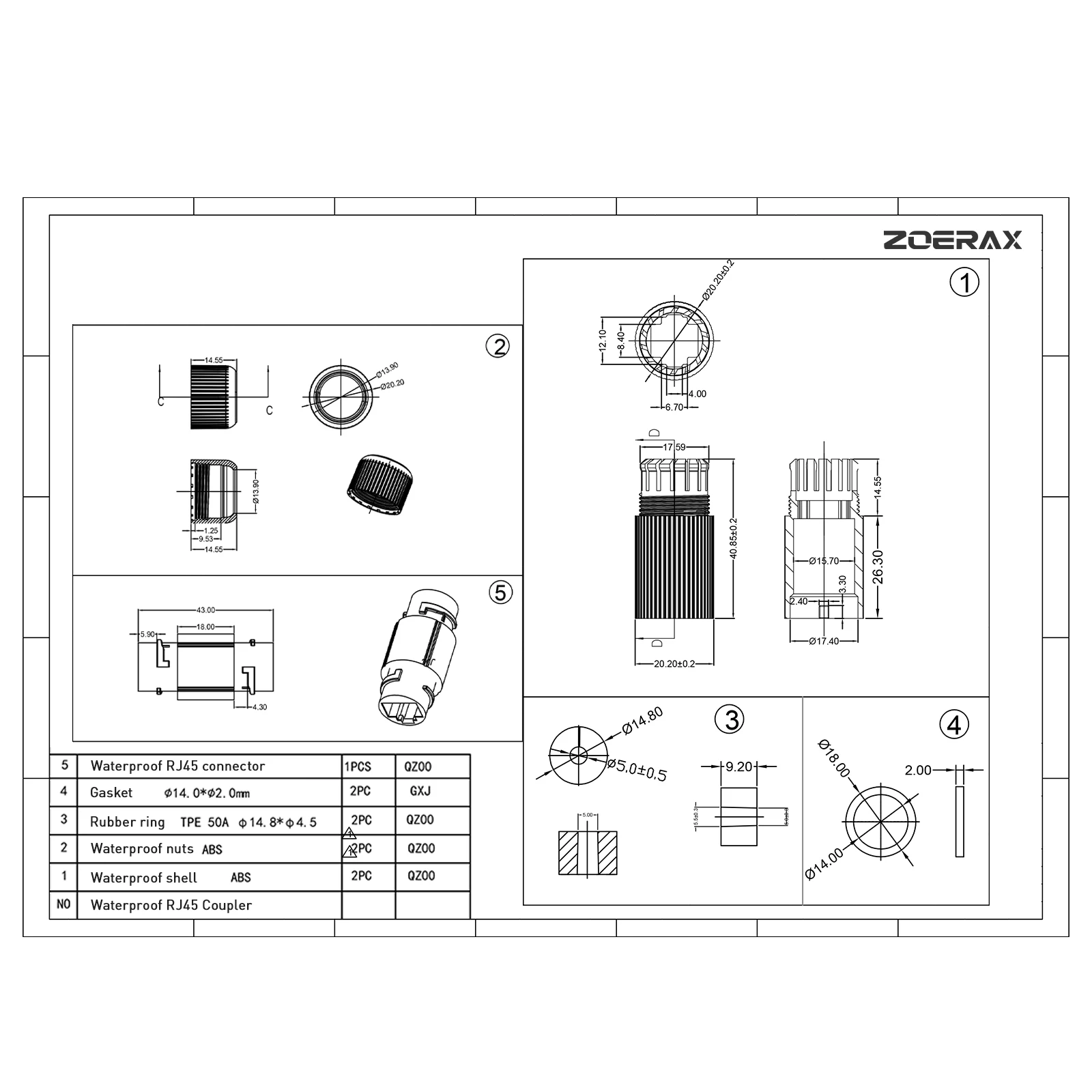 ZoeRaX Conector RJ45 a prueba de agua, Cat6/Cat5E/Cat5 Acoplador Ethernet IP68, Extensor de cable LAN Ethernet para exteriores Adaptador hembra a hembra