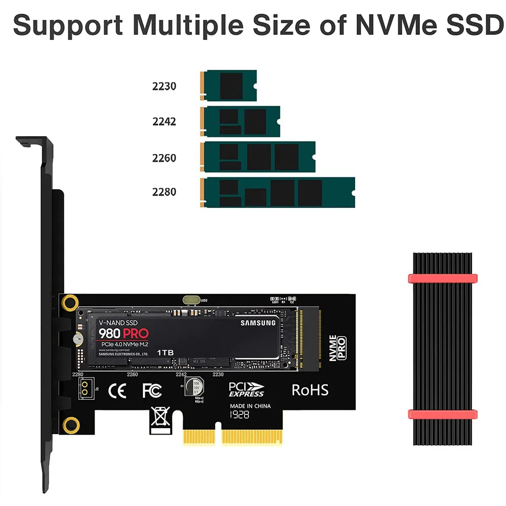 Comprar ZoeRax-adaptador M.2 PCIe a NVMe, tarjeta de expansión con disipador de calor de aluminio, 64Gbps, PCIe4.0 X4 Gen4 NVMe M.2, 2230/2242/2260/2280 m-key