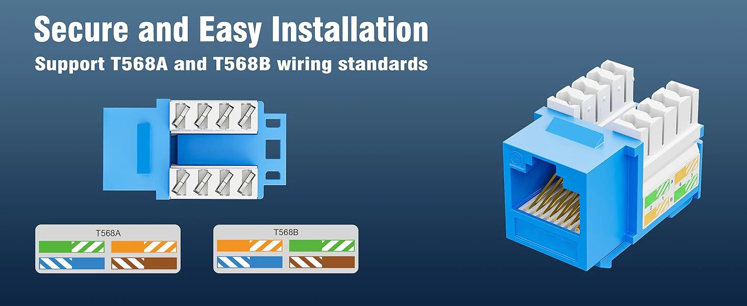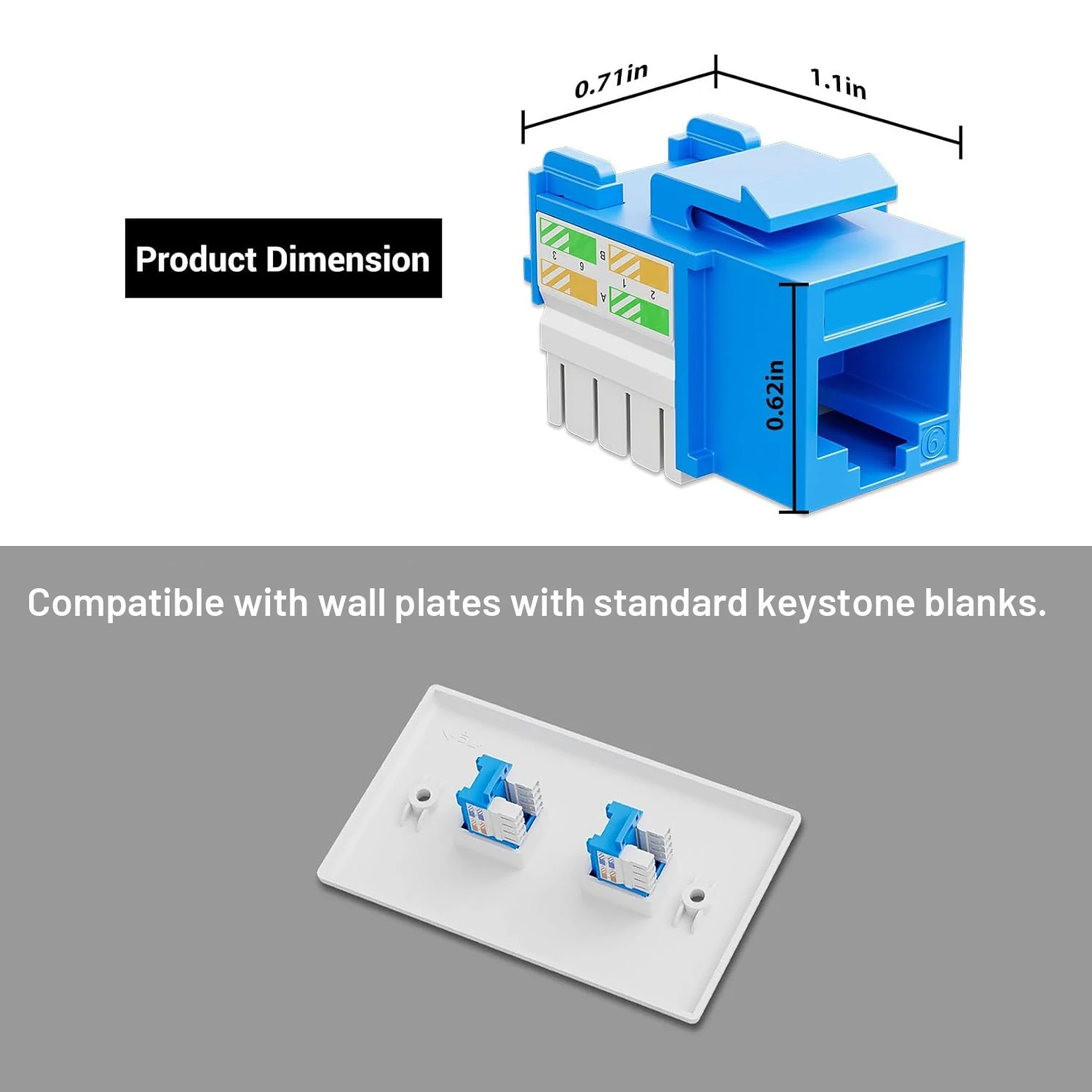 【TRANSMISIÓN DE DATOS DE ALTA VELOCIDAD】 Velocidad de transmisión de Cat6 Keystone de hasta 1000 Mbps sin pérdida de velocidad o calidad de los datos. Nota: la velocidad de transmisión se ve afectada por la calidad y la longitud del cable de red, lo que resulta en la pérdida de velocidad de datos.