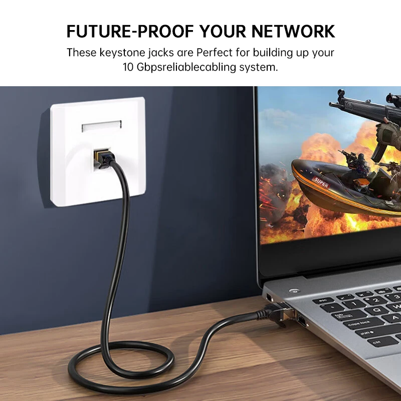 【Autoterminable, no se requiere herramienta】 Este conector Keystone UTP sin herramientas es un conector hembra RJ45 para redes; los conductores de cable se pueden terminar con una tapa de ajuste a presión de 180 grados que se presiona en su lugar, diseñado para encajar sin problemas en la mayoría de las aplicaciones estándar Keystone