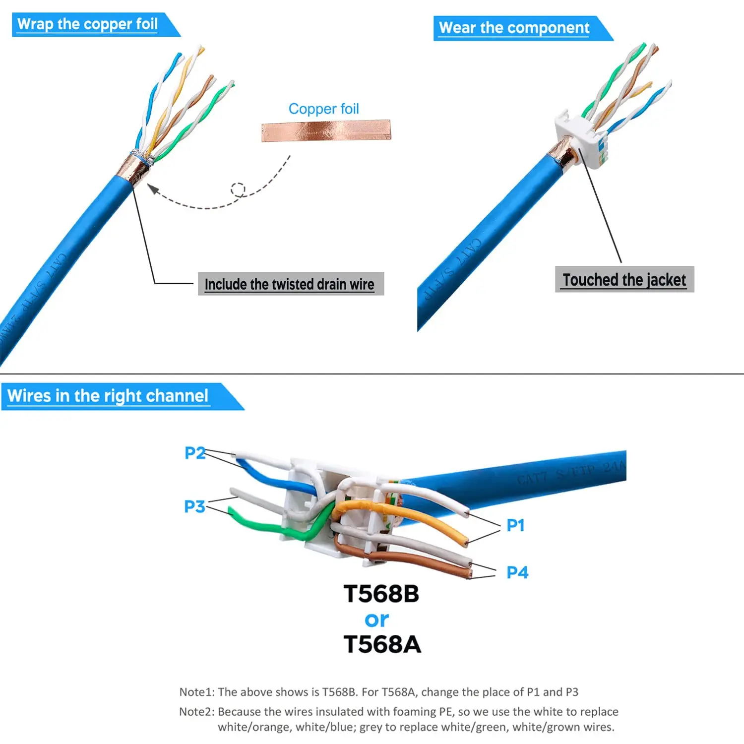 Rendimiento Cat 7 para proteger su red en el futuro.Compatible con versiones anteriores de 10 MB/100 MB/1000 MB/10 GB Ethernet CAT6A CAT5E CAT6A; De conformidad con el estándar ANSI/TIA/EIA 568-C.2