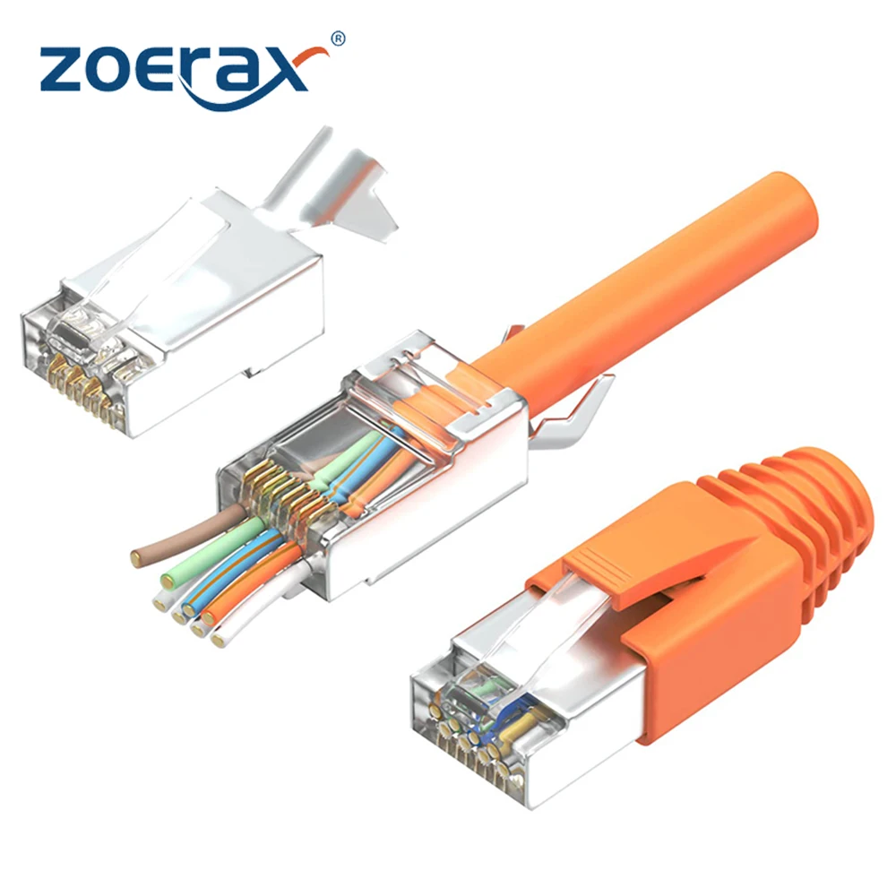 Comprar ZoeRax Cat7 Cat6A Conectores de paso RJ45, extremos Ethernet de enchufe modular chapado en oro de 3 clavijas y 50 μ con botas de alivio de tensión