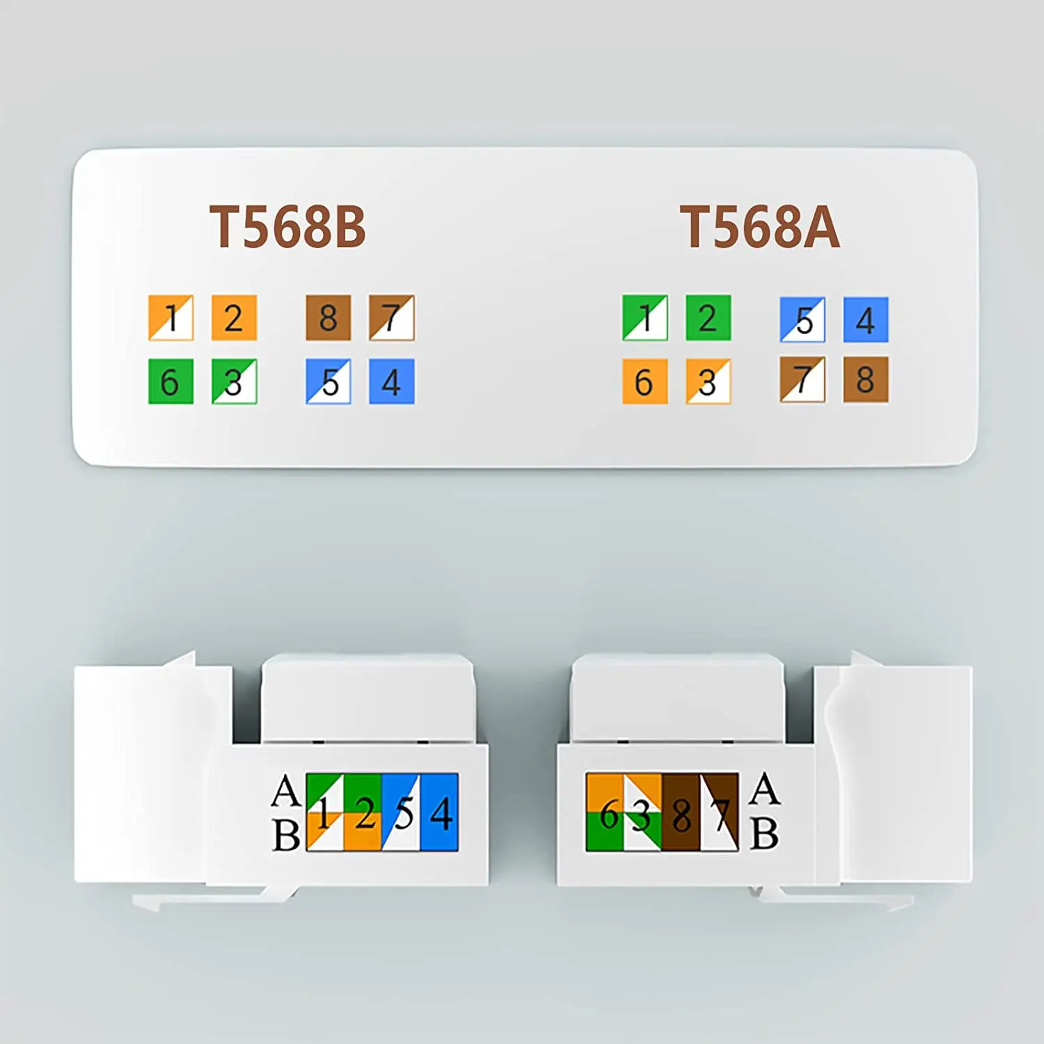 ✅Easy to punch down wires, color coding on side of connector easy to distinguish. Supports T568A and T568B wiring.