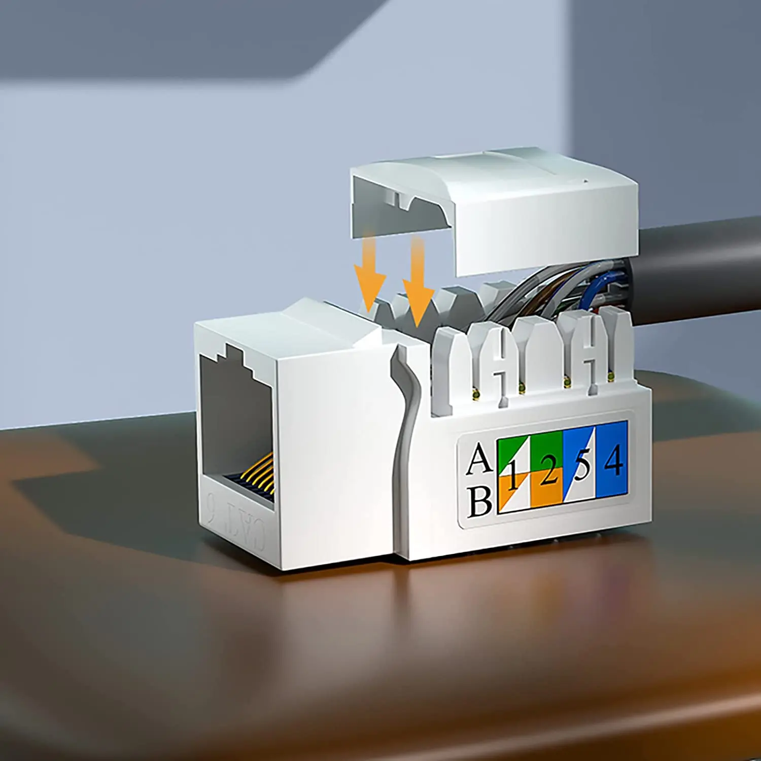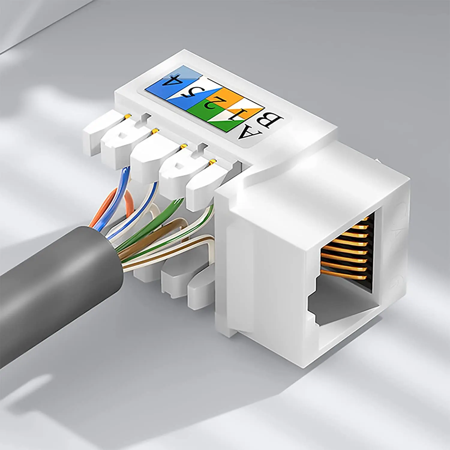 ✅Easy to punch down wires, color coding on side of connector easy to distinguish. Supports T568A and T568B wiring.