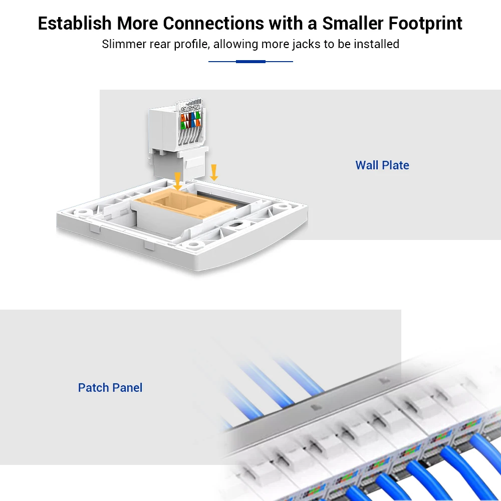 ✅Aplicaciones: El conector es compatible con una amplia gama de paneles de conexión, cajas de montaje en superficie o placas de pared (placas frontales). Es bastante versátil y se puede montar con diferentes tipos de keystones en una misma placa.