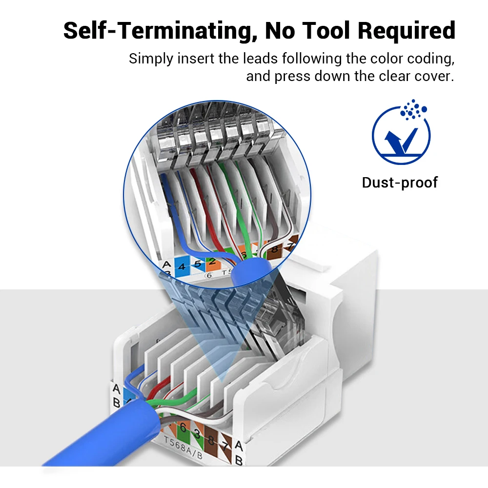 ZOERAX 10 Cat6 Cat5e Tool-Less RJ45 Keystone Jack, No Punch Down Tool Required Module Coupler(No compatible con Patch Panel)