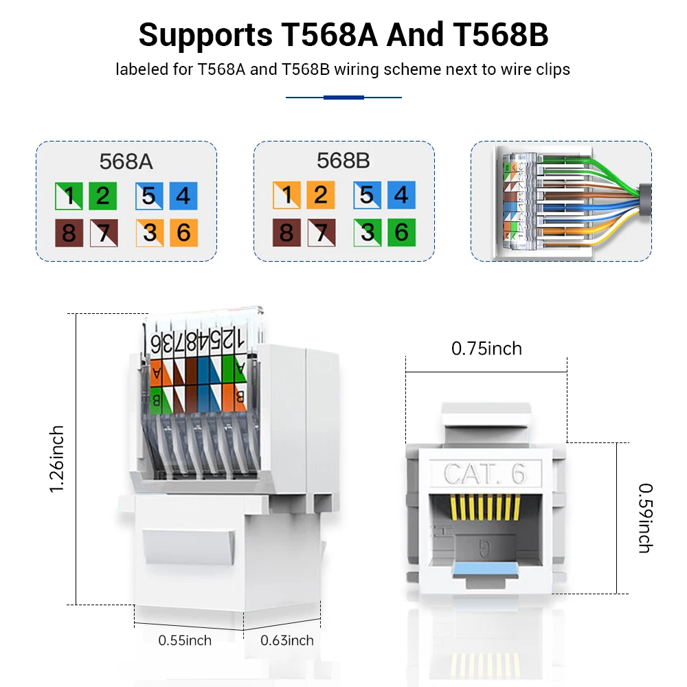 ✅Alto rendimiento: Cumple con el rendimiento de categoría 6 en cumplimiento con el estándar ANSI/TIA/EIA 568-C.2 y admite PoE. Compatible con sólidos y conductores de cobre trenzados de 23 a 26 AWG.