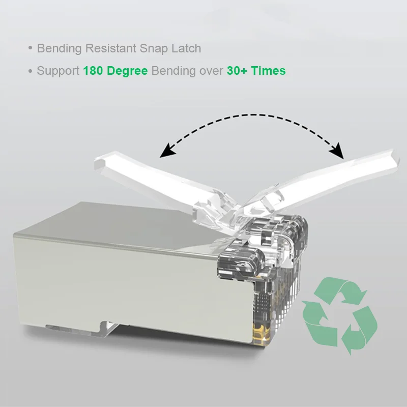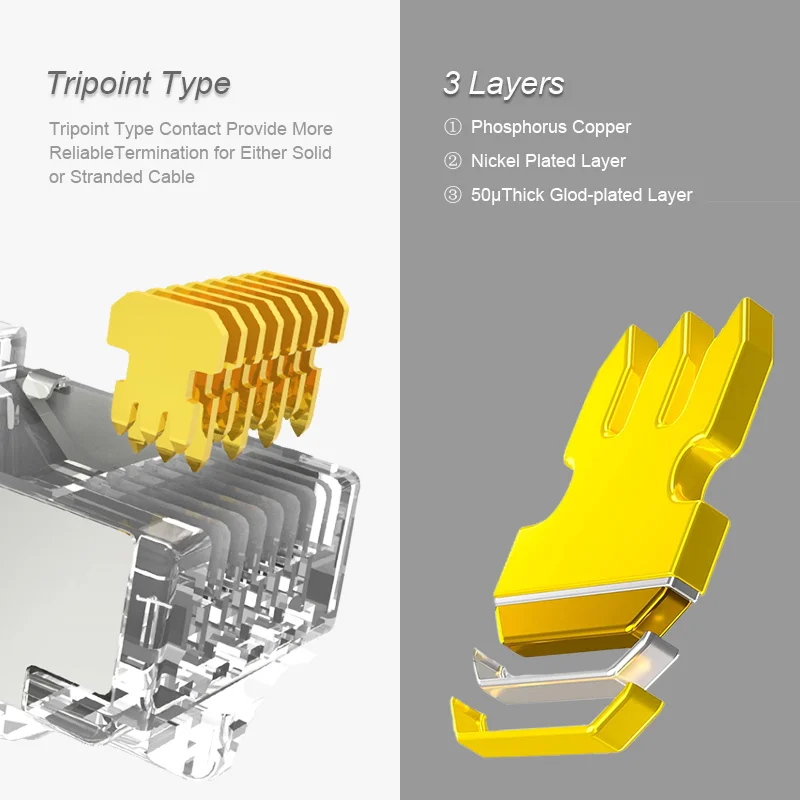 ※ OPTIMIZA EL RENDIMIENTO El chip chapado en oro presenta un antioxidante más fuerte y una transmisión de datos de buen rendimiento. Estos duraderos conectores de crimpado RJ45 están hechos de PVC respetuoso con el medio ambiente y son ideales para redes de datos compatibles con blindaje Cat 6.