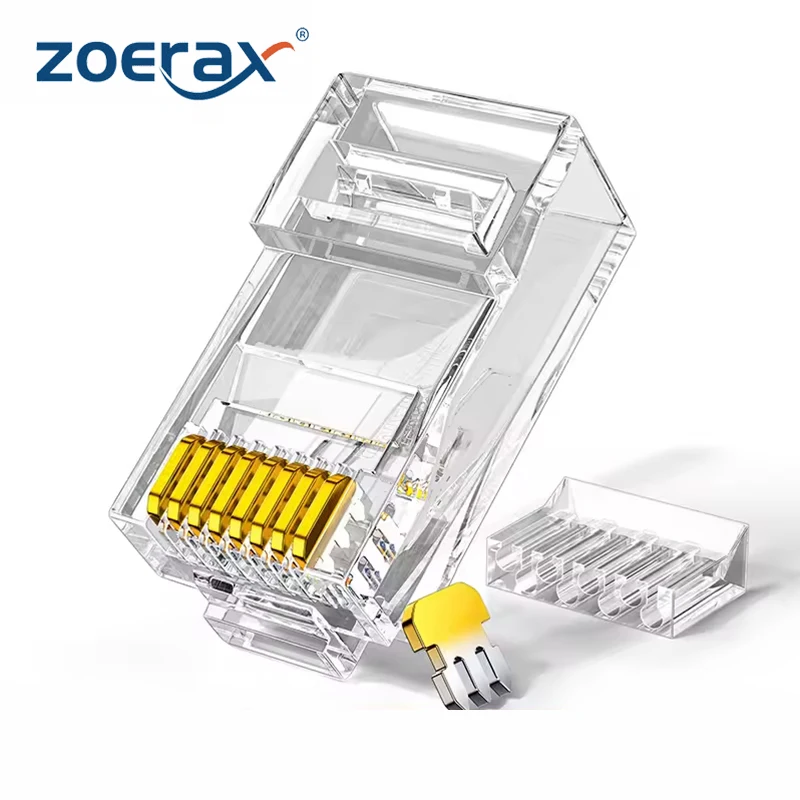 Conectores ZoeRax RJ45, enchufes modulares estándar, UTP chapado en oro 2 piezas traje CAT6 RJ45 8P8C extremo de crimpado para cable Ethernet, soporte POE/POE + / POE ++, 50/paquete