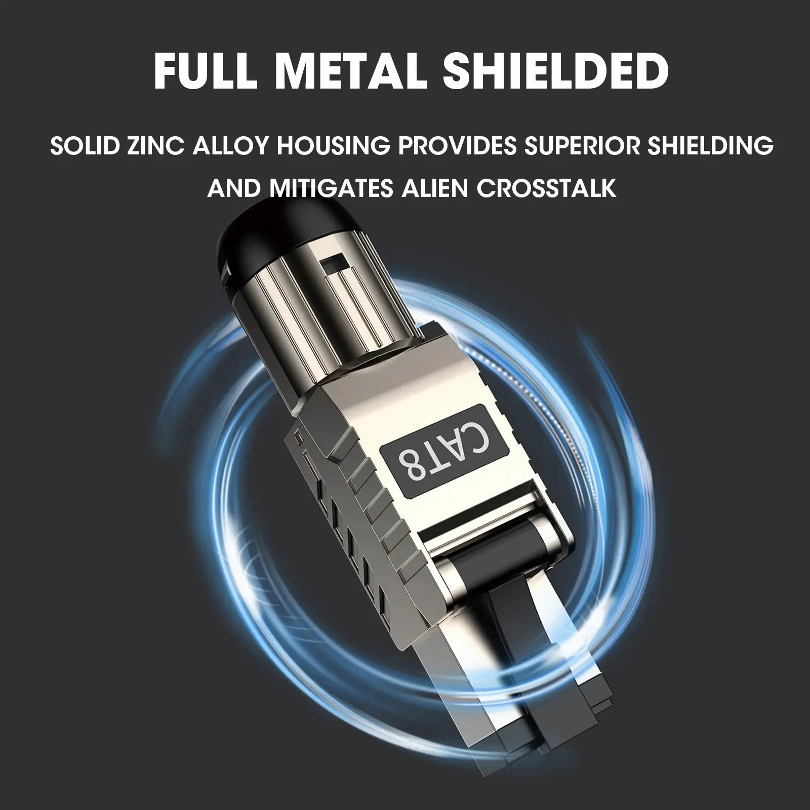 【True Cat8 Speed】ZoeRax Cat8 RJ45 Los conectores de terminación de campo de especificaciones completas chapados en oro de 24K admiten velocidades de 40G a 2000MHz; perfecto para aplicaciones de ultra alta velocidad.